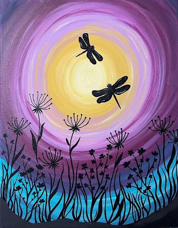 All materials are included in this step-by-step paint class. We will be painting with acrylic paints on 11x14" canvas. On top of the colors already shown in our example painting, there will be ample additional colors for customization! Be sure to keep the painting set-up at the reserved event tables - no painting at the couch, please.